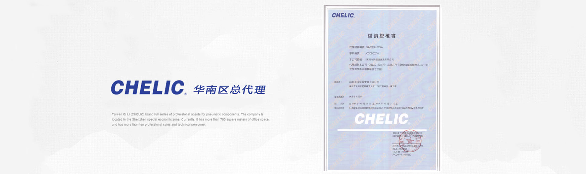 深圳市鸿盛益实业有限公司 成立于2010年,是台湾气立可(CHELIC)品牌全系列气动元件专业代理商。公司设立在深圳特区,目前拥有办公场所700多平方米,拥有专业销售和技术人员十余人,具有专业的气动元件销售和售后经验。我们郑重承诺:产品全部原厂生产,质量保证,一年保修,为客户排除后顾之忧。